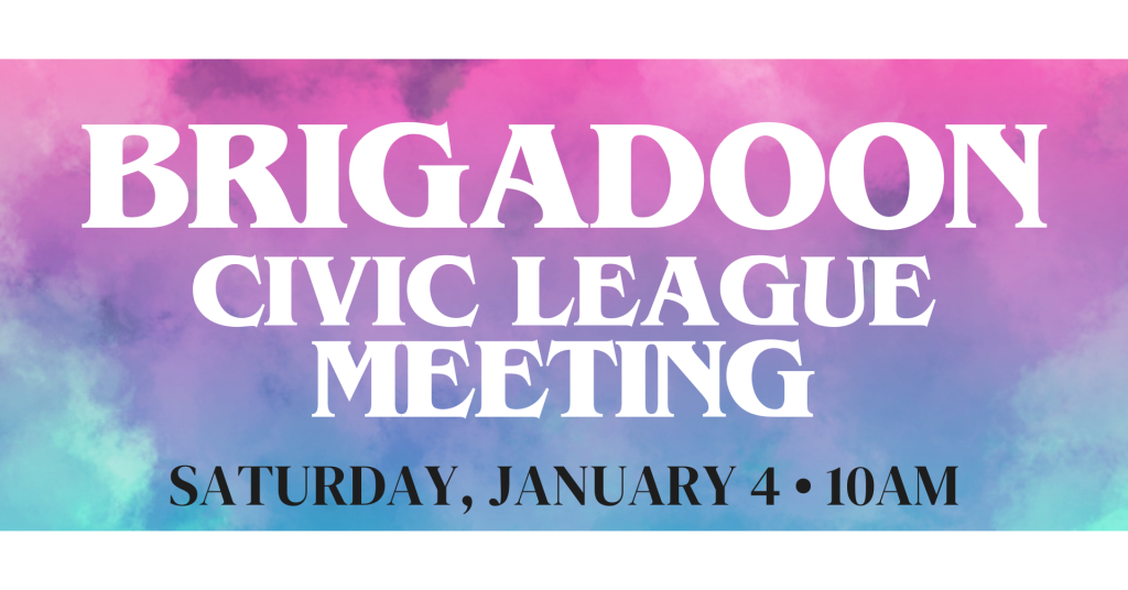 The 4th quarter Brigadoon Civic League meeting will be held Saturday, January 4, at Grace River Church, 10:00am. This meeting will hold the vote for and install our 2025 officers.